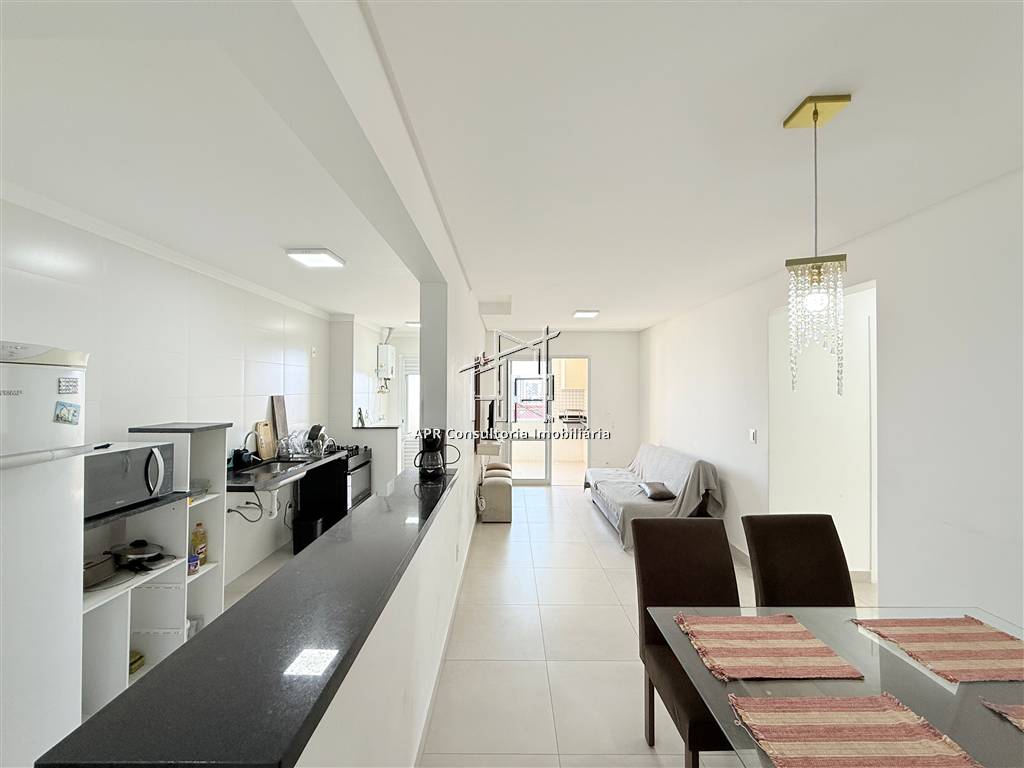 Lindo apartamento de 01 dormitório com suíte, vista mar, totalmente decorado e mobiliado, 02 vagas de garagem, apenas 500 metros do mar. Próximo de academias, restaurantes, padarias, mercados, escolas, etc.